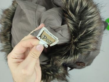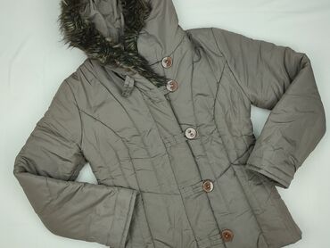 Damska zimowa kurtka puchowa w kolorze taupe/szaro‑beżowym. - Fason: średnia długość (do bioder), taliowanie pionowymi przeszyciami - Zapięcie: suwak główny + ozdobne paski z metalowymi kółkami z ...