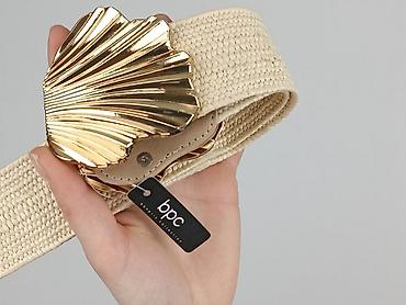 Pasek damski bpc Bonprix Collection – beżowy, pleciony, z ozdobną klamrą w kształcie złotej muszli