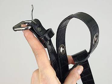 - Zapięcie: klasyczna metalowa klamerka, szlufka do utrzymania końcówki paska
