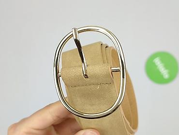 Damski pasek w odcieniu jasnego beżu/champagne z drobnym połyskiem. - Materiał: skóra ekologiczna (licowana od spodu, wierzch z lekkim brokatowym efektem). - Kolor: beżowo-złoty, subtelnie metalicz...