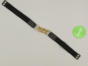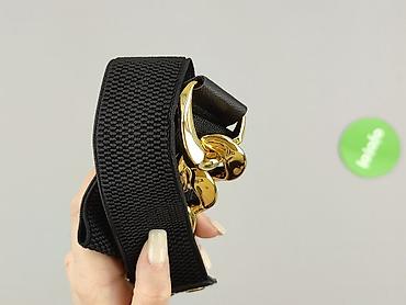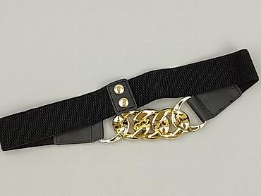 Czarny, elastyczny pasek damski z ozdobną, złotą klamrą-łańcuchem