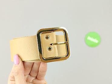 Damski pasek w odcieniu jasnego beżu/champagne z drobnym połyskiem. - Materiał: skóra ekologiczna (licowana od spodu, wierzch z lekkim brokatowym efektem). - Kolor: beżowo-złoty, subtelnie metalicz...