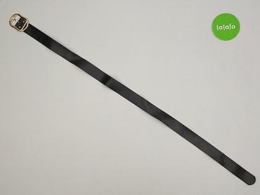Czarny damski pasek z ozdobną klamrą - Materiał: tworzywo skóropodobne o drobnej, ziarnistej fakturze - Kolor paska: czarny, matowy - Klamra: metalowa, złota, z motywem dwóch zachodzących na siebi...Stan: