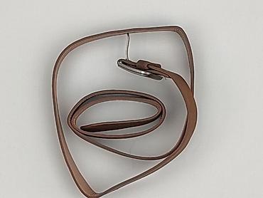 Pasek damski, brązowy - Materiał: skóra naturalna (licowa na wierzchu, od spodu zamszowa) - Kolor: ciemny brąz - Klamra: podwójna, ozdobna – dwa okręgi z metalowych, złotych kulek - Szerokość pask...