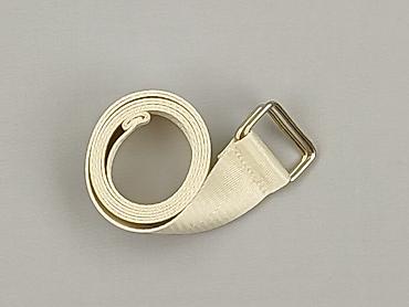 Pasek damski – materiałowy, kremowy - Typ: pasek tekstylny - Kolor: kremowy/ecru - Zapięcie: metalowa klamra w kolorze złotym (kształt prostokątny z zaokrąglonymi rogami), regulacja przez przewlec...