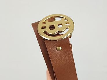 Damski pasek w kolorze karmelowego brązu z metalową klamrą w odcieniu złota (litera B). Smukły, elegancki, idealny do spodni, spódnic i sukienek. Pasek ma delikatnie fakturowaną powierzchnię, kilka...Płeć: