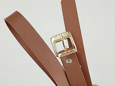 Damski pasek skórzany – karmelowy/brąz koniakowy - Smukły, wąski fason idealny do sukienek, spódnic i spodni z szlufkami - Materiał: skóra naturalna o delikatnej fakturze - Klamra w kształcie serc...