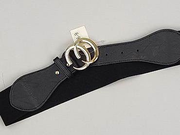 Szeroki damski pasek elastyczny, czarny, z ozdobną złotą klamrą (dwa zachodzące na siebie okręgi).