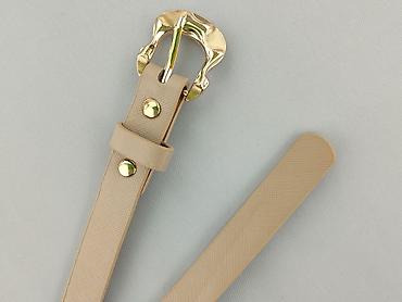 Damski pasek wąski, beżowy - Materiał: skóra ekologiczna/PU z drobną fakturą saffiano - Kolor: jasny beż (nudowy) - Szerokość: ok. 1,5 cm – elegancki, subtelny fason - Długość: klasyczna, z kilkom...Płeć: