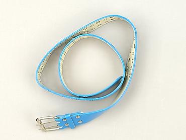 Pasek damski, niebieski, z połyskiem (lakierowany), z podwójną klamrą w kolorze srebrnym. - Materiał: tworzywo/lakierowana eko‑skóra (gładka, błyszcząca) - Kolor: intensywny błękit z jasnym, kremo...