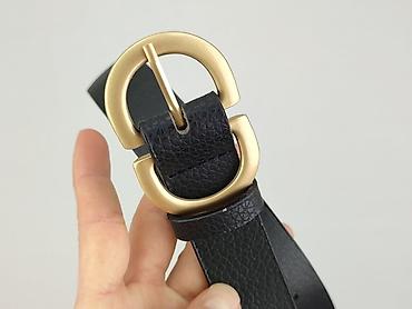 Pasek damski, czarny, z ozdobną złotą klamrą. - Materiał paska: gładka skóra ekologiczna lub skóra licowa (na połysk). - Kolor: czarny. - Klamra: metalowa w kolorze złota, z fakturowanym, pleciony...