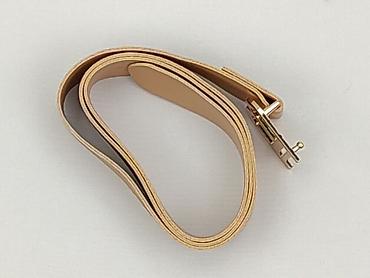 Damski pasek w odcieniu jasnego beżu/champagne z drobnym połyskiem. - Materiał: skóra ekologiczna (licowana od spodu, wierzch z lekkim brokatowym efektem). - Kolor: beżowo-złoty, subtelnie metalicz...