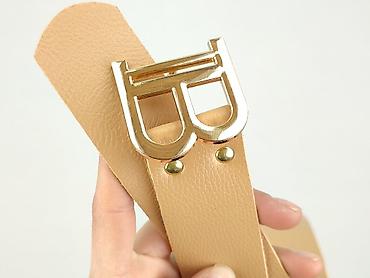 Damski pasek beżowy z metalową klamrą w kolorze złota