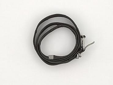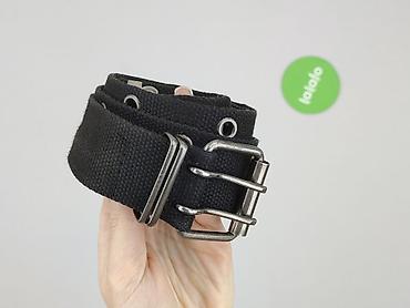Damski pasek materiałowy, czarny, z białymi przeszyciami po obu krawędziach. Klasyczna klamra w kolorze srebrnym. Pasek wykonany z wytrzymałej taśmy o plecionej strukturze, elastycznej i odpornej n...Stan: