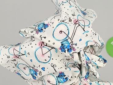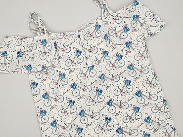 Sukienka damska z delikatnego, lejącego materiału, w letni print z rowerami i niebieskimi bukietami. Kolor tła: biel/krem. Krój prosty, wygodny, z falbaną na biuście oraz cienkimi ramiączkami wiązanymi na supeł/kokardkę dla regulacji długości. Rękawki typu hiszpanka opadające na ramiona, tworząc modny off-shoulder. Długość przed kolano (mini/krótka). Miękka, przewiewna tkanina – idealna na lato, spacery i wakacje. Wzór w drobne serduszka i napisy „Summer” dodaje dziewczęcego charakteru.
