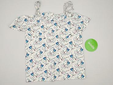 Bluzka damska bez rękawów z falbankami - Rozmiar: S (na metce: FOR WOMEN S) - Materiał: 100% bawełna - Kolor bazowy: biały - Wzór: kwiaty w odcieniach czerwieni i granatu oraz drobne czarne kropec...