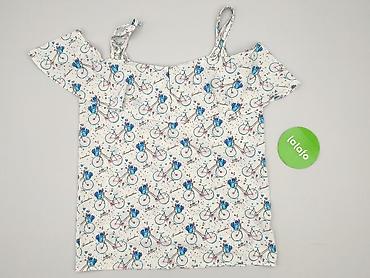 Biała bluzka damska z koronkową górą - Fason: luźny, lekko rozkloszowany, z delikatnie falującym dołem - Materiał: dół z miękkiej, marszczonej tkaniny; góra i rękawy z ażurowej koronki w kwiatowy ...