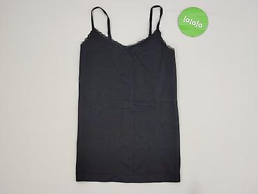 Czarna damska koszulka na ramiączkach - Krój: klasyczny top/camisole, dopasowany, z cienkimi ramiączkami spaghetti - Kolor: czarny - Rozmiar z metki: L - Skład materiału: 95% poliester, 5% elastan...