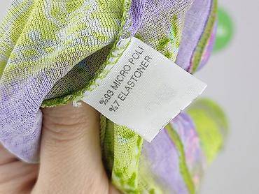Bluzka damska z krótkim rękawem, rozmiar S. - Fason: luźniejszy, z lekkim marszczeniem/zakładkami z przodu pod dekoltem - Dekolt: zaokrąglony - Długość rękawa: krótki - Wzór: abstrakcyjny, wieloba...