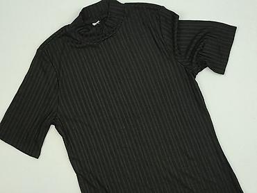 Czarna damska bluzka z krótkim rękawem (nietoperz/dropped shoulder) z ozdobnymi dżetami na ramionach. - Kolor: czarny - Krój: prosty, lekko luźny, rękaw typu cap/kimono - Dekolt: okrągły - Detale:...Stan: