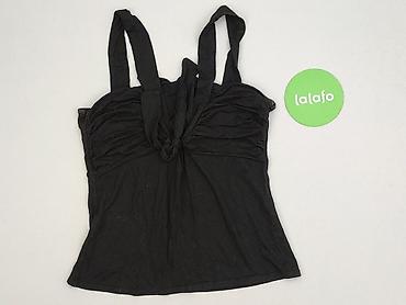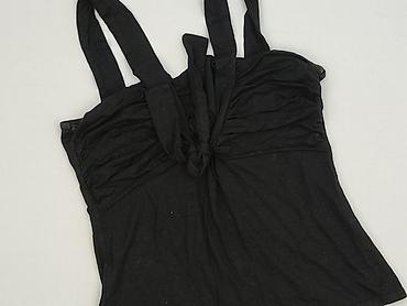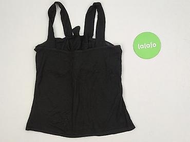 Czarna damska koszulka bez rękawów / top - Fason: klasyczny tank top z szerokimi ramiączkami, półokrągły dekolt, lekko zaokrąglony dół - Tył: głębsze wycięcie - Materiał: 95% wiskoza, 5% elastan –...Stan: