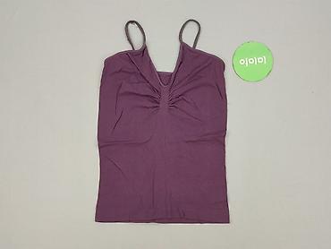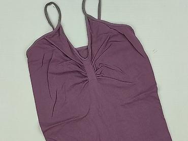 Fioletowa damska koszulka bez rękawów/top - Krój: dopasowany, prążkowana dzianina - Dekolt: w kształcie litery V, wykończony koronkową lamówką i ozdobnym przeszyciem - Materiał: 53% modal, 47% baw...