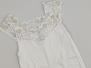 Top damski bez rękawów w kolorze ecru/kremowym. - Fason: dopasowany, dekolt w serek (V-neck) - Przód: gładka, prążkowana dzianina - Tył: w całości z koronki o kwiatowym wzorze; koronka częściowo p...