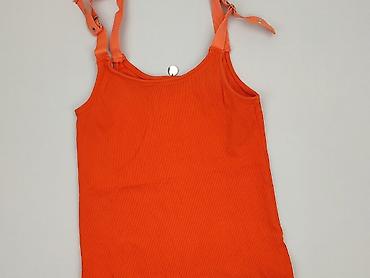 Top damski na ramiączkach, kolor intensywny pomarańcz/koral. - Krój: dopasowany, na cienkich regulowanych ramiączkach - Dekolt: półokrągły z ozdobną aplikacją/kwiatowym haftem z przodu - Materiał: ...