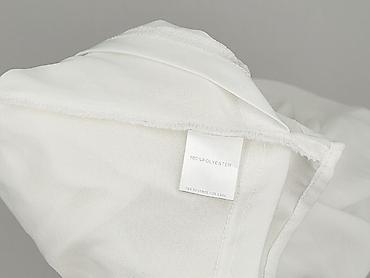 Biała bluzka damska z krótkim rękawem - Fason: luźny, oversize; lekko opadające rękawy - Dekolt: w kształcie litery V z krótką stójką - Materiał: 100% poliester (metka na zdjęciu) - Rozmiar z metk...