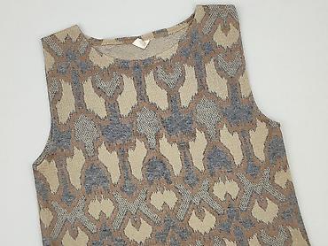 Damska bluzka bez rękawów z dekoltem w serek. - Wzór: geometryczne, ukośne pasy w odcieniach szarości z akcentami żółtego, granatu i czerni - Krój: dopasowany, lekko elastyczny materiał zapewni...Stan: