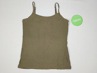 Top damski na cienkich ramiączkach - Kolor: khaki/oliwkowy - Fason: dopasowany, prosty, dekolt w kształcie delikatnego V - Materiał: 100% bawełna (metka: BOMULL/PUUVILLA) - Miękka, elastyczna dzia...Stan: