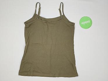 Top damski na cienkich ramiączkach - Kolor: khaki/oliwkowy - Fason: dopasowany, prosty, dekolt w kształcie delikatnego V - Materiał: 100% bawełna (metka: BOMULL/PUUVILLA) - Miękka, elastyczna dzia...
