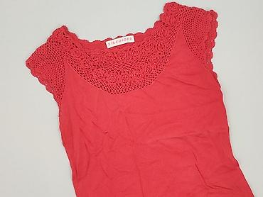 Bluzka damska bez rękawów, koralowa, rozmiar L - Fason: luźny, lekko rozkloszowany; bez rękawów - Dekolt: półokrągły z przezroczystą wstawką z siateczki - Tył: wycięcie łezka zapinane/wiązaną tasi...