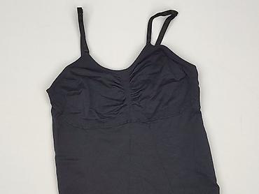 Czarna damska koszulka na ramiączkach (top) - Fason: dopasowany, prosta linia, dekolt prosty - Ramiączka: cienkie, elastyczne - Kolor: czarny - Materiał: miękka, elastyczna dzianina (syntetyk z do...