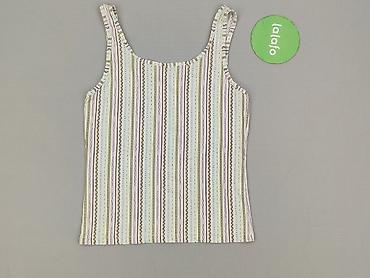 Koszulka damska bez rękawów – top w pasy - Krój: luźny, bez rękawów, dekolt w łódkę/scoop - Długość: lekko wydłużony tył (zaokrąglony dół) - Wzór/kolor: trzy poziome pasy – granat na górze, intens...