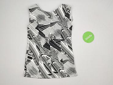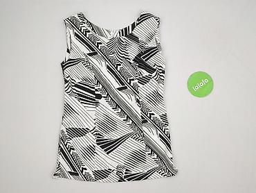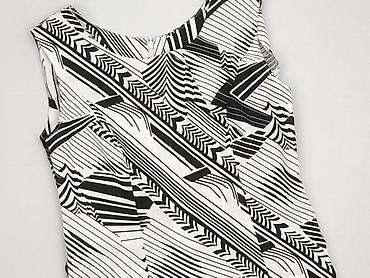 Bluzka damska bez rękawów z geometrycznym wzorem - Krój: luźny, lekko przedłużony tył (asymetryczny dół) - Dekolt: półgolf z czarną lamówką; zapięcie z tyłu na guzik/pętelkę - Wzór: czarno-białe, ...