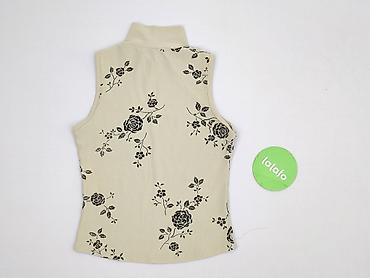 Damska bluzka bez rękawów z miękkiej, cienkiej tkaniny. Luźny krój typu top, okrągły dekolt. Wzór kwiatowy na całej powierzchni: połączenie odcieni szarości z akcentami beżu, kremu, czerwieni i fio...Stan: