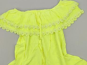 Bluzka hiszpanka dziewczęca – żółta, ażurowa - Krój: hiszpanka z odkrytymi ramionami - Dekolt/karczek: szeroka elastyczna guma, marszczona, falowany brzeg - Rękawy: długie, rozszerzane ku dołowi, ...