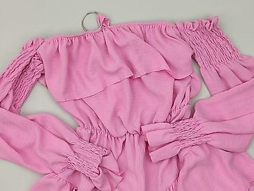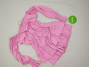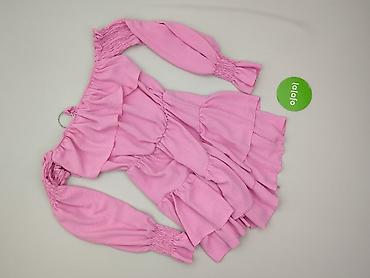 Bladoróżowa bluzka damska hiszpanka - Krój: odkryte ramiona (hiszpanka) z szeroką, marszczoną gumką wokół dekoltu i ramion - Rękaw: krótki, lekko rozszerzany - Rozmiar: S (na metce „WOMEN S”) - Ma...