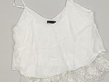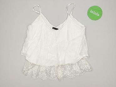 Biała damska bluzka/top na ramiączkach - Delikatny, lekko marszczony materiał o miękkim chwycie - Regulowane cienkie ramiączka - Dół wykończony ażurową koronką z okrągłymi wycięciami (efekt haftu ...