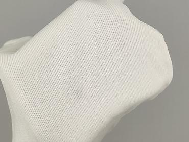 Biała damska bluzka z krótkim rękawem, prążkowana - Krój: dopasowany, z krótkim rękawem - Dekolt: półgolf/stójka - Materiał: elastyczna, miękka dzianina w pionowe prążki (ribbed), zapewnia wygodę ...