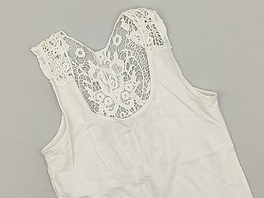 Bluzka damska w kolorze białym z dekoracyjną koronką. - Fason: dopasowany, bez rękawów, z koronkowymi wstawkami tworzącymi delikatne „skrzydełka” na ramionach - Dekolt: okrągły z ozdobną, ażurową ...