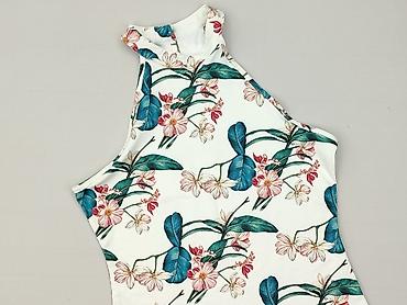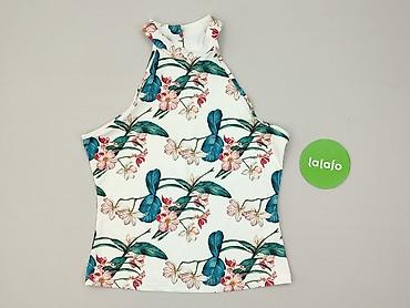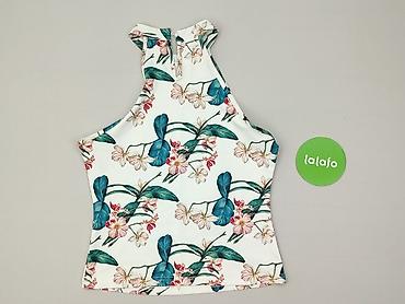 Bluzka damska House, rozmiar M (EU). - Fason: bez rękawów, z okrągłym dekoltem i delikatnym wycięciem z przodu; lekko zaokrąglony dół. - Wzór: tropikalny print – zielone liście monstery i palm z ...