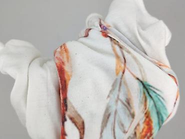 Biała bluzka damska z krótkim rękawem i wzorem łapacza snów. - Fason: luźny, boho; elastyczna gumka przy dekolcie i na końcach rękawków - Dekolt: szeroki, elastyczny, z troczkami do wiązania (możl...