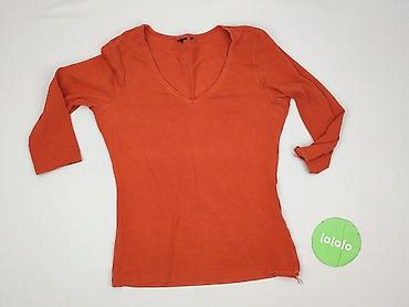Bluzka damska z długim rękawem, pomarańczowa. - Krój: klasyczny, lekko zaokrąglony dół - Dekolt: okrągły z krótką plisą i rzędem metalowych napów (zapięcie typu henley) - Rękawy: długie - Materiał...