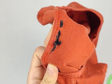 Bluzka damska w kolorze intensywnej pomarańczy. - Fason: luźny, prosty krój - Dekolt: w kształcie litery V - Rękawy: krótkie z falbanką - Rozmiar z metki: S - Materiał: miękka, gładka dzianina (na...