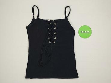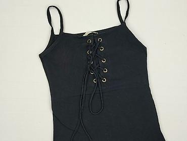 Czarny top damski na ramiączkach, prążkowany - Fason: dopasowany, z dekoltem w kształcie litery V - Długość: krótka (crop), szeroki elastyczny pas u dołu podkreślający talię - Materiał: elastyczna...