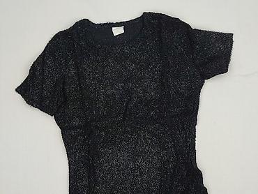 Czarna bluzka damska z krótkim rękawem - Fason: swobodny, lekko asymetryczny dekolt w kształcie litery V - Rękawy: krótkie - Dół: delikatnie zaokrąglony - Zapięcie/rozcięcie: niewielkie rozcięcie ...Rozmiar: