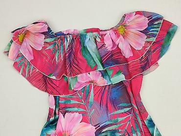 Bluzka hiszpanka HOUSE – rozmiar S - Krój: odsłonięte ramiona (hiszpanka) z falbaną na dekolcie i rękawach - Wzór: tropikalne liście w odcieniach zieleni, bieli i fioletu - Materiał: 100% bawełna ...