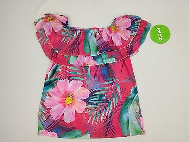 Bluzka dziewczęca hiszpanka z krótkim rękawem - Krój: hiszpanka – elastyczna, marszczona gumka wokół dekoltu pozwala nosić ramiona odkryte - Rękawy: krótkie, z falbaną - Dół: lekko ściągany gumką ...